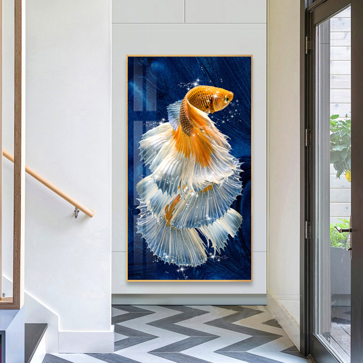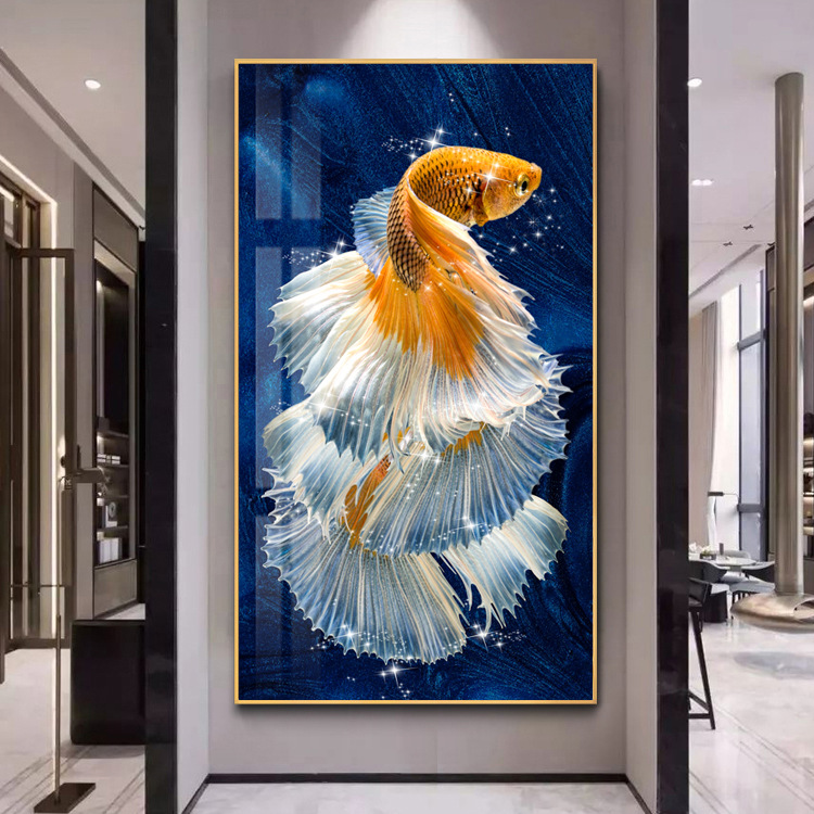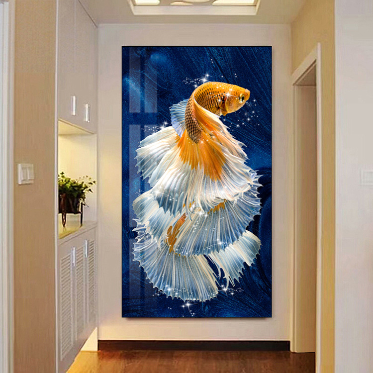 pla-2011 *สินค้าหมด* ชุดภาพติดคริสตัลกลม ลายปลากัดทอง (งานติดเต็มภาพ) ขนาด 40*70 ซม.ผ้าแคนวาสลงผังลายเต็ม+คริสตัลกลม 35 สี+อุปกรณ์ครบชุด