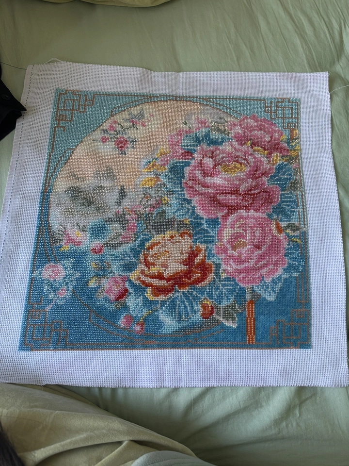 งานปักเต็มผืนผ้า ปักทั้งหมด รวมพื้นหลัง พร้อมลูกปัดแก้ว