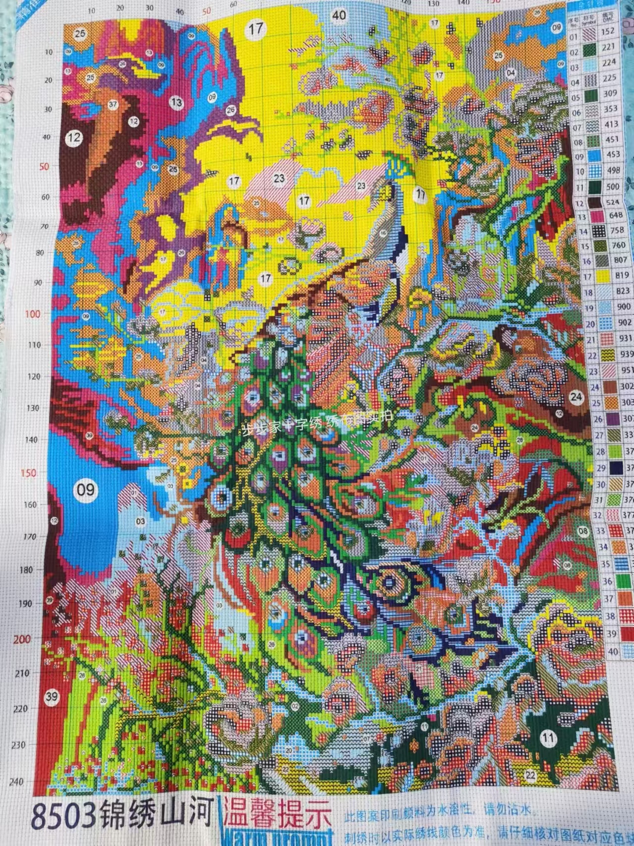 งานปักเต็มผืนผ้า ปักทั้งหมด รวมพื้นหลัง ไม่มีเดินเส้น