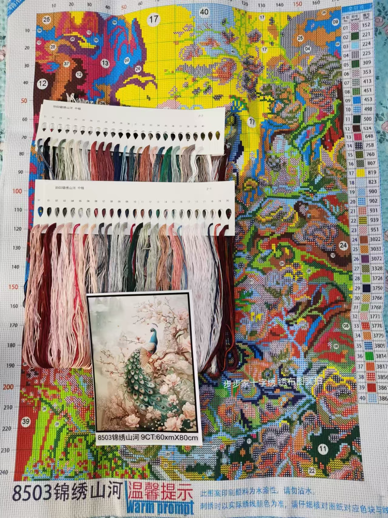 ผังลาย 4 สี ระบุเบอร์ไหมปัก DMC เผื่อต้องการนำแบบไปปักเพิ่ม