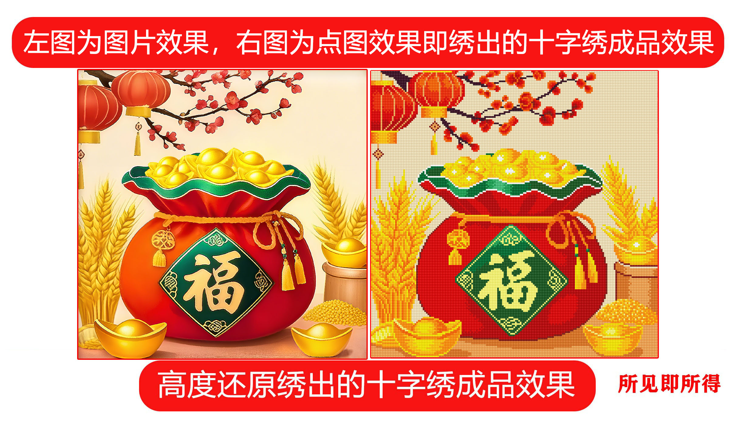 งานปักเต็มผืนผ้า ปักทั้งหมด รวมพื้นหลัง ไม่มีเดินเส้น
