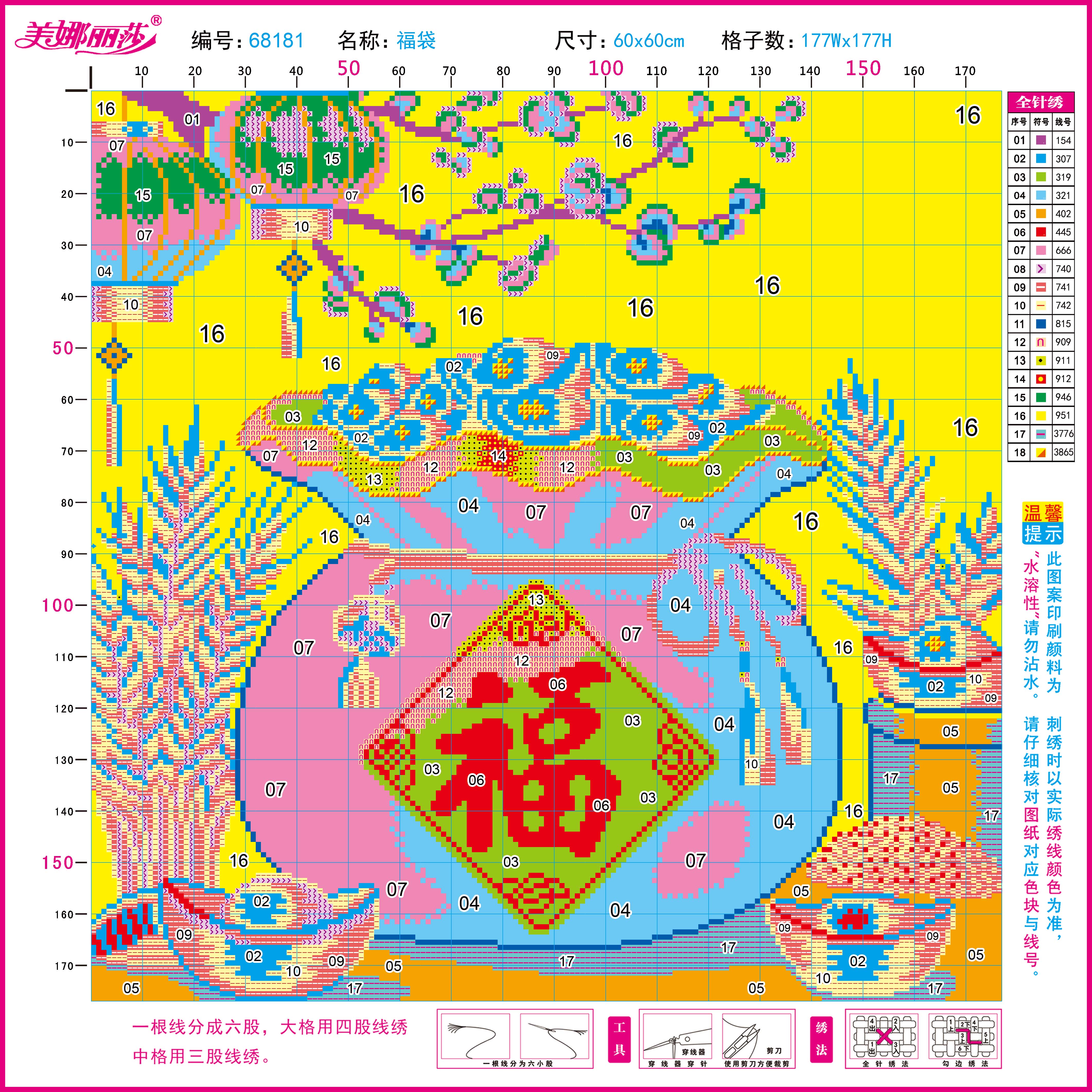 ขนาดตารางปัก กว้าง 177 ช่อง สูง 177 ช่อง