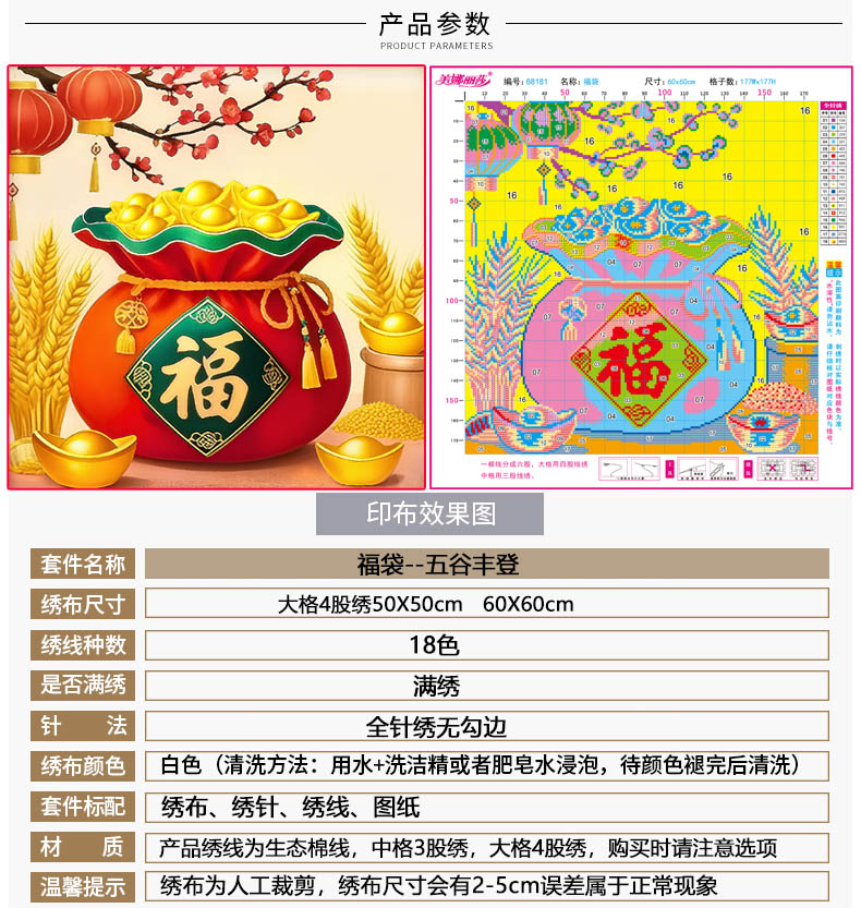 ขนาดผ้าครอสติช กว้าง 60 ซม. สูง 60 ซม.
