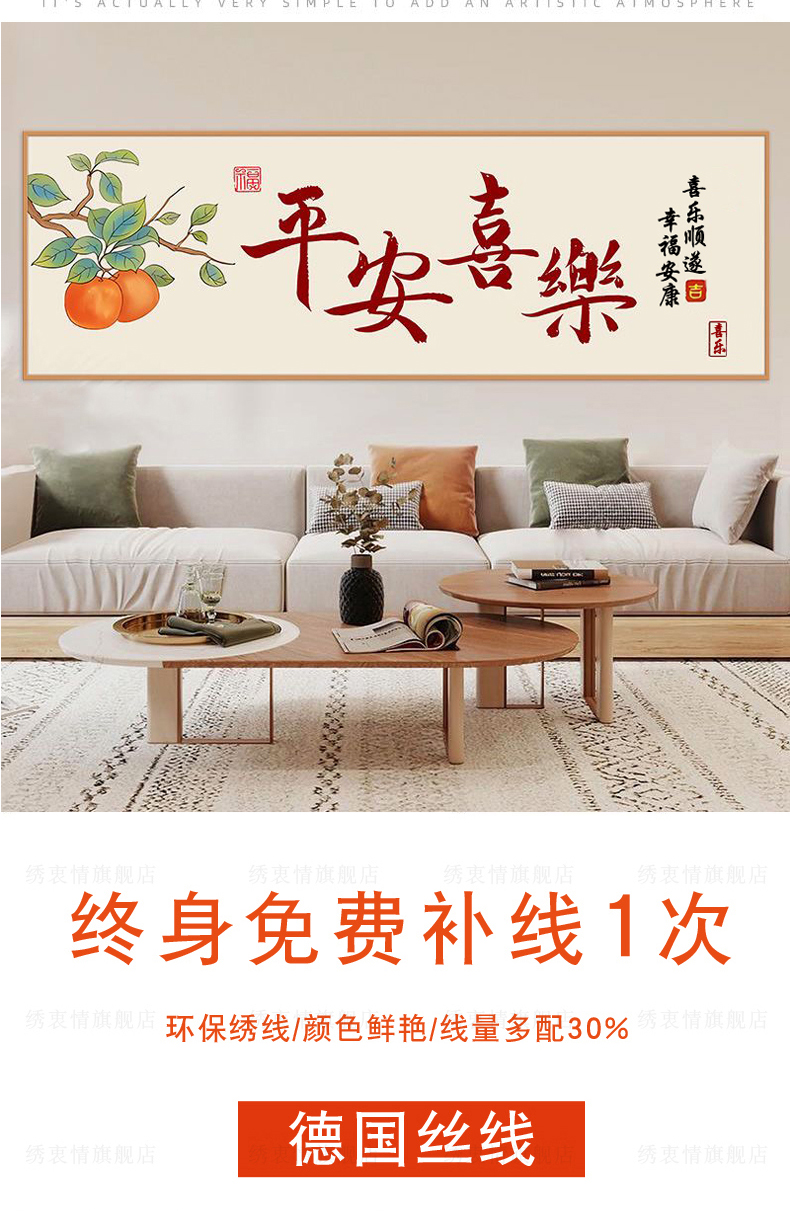 chinese-1010 *พร้อมส่ง* ชุดปักครอสติช ลายป้ายอวยพร สันติภาพและความสุข Peace and Joy (ผ้า11CTพิมพ์ลาย ไม่มีเดินเส้น ไม่มีผังลาย) ขนาด 120*45 ซม.ผ้าครอสติช 11CTพิมพ์ลายปักบนผ้า ไหมคอตตอน 16 สี เข็ม